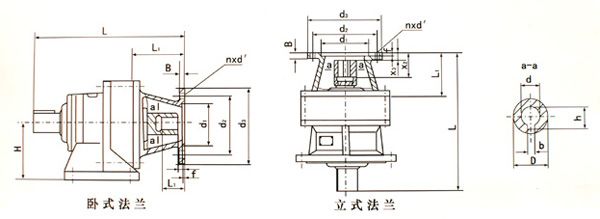 尺寸系列 機(jī)型號 | 電動機(jī) 功率KW | 電動機(jī) 機(jī)座號 | L | L1 | H | B | f | d1(公差) | d2 | d3 | d(公差) | D | h | b | nxd | |||